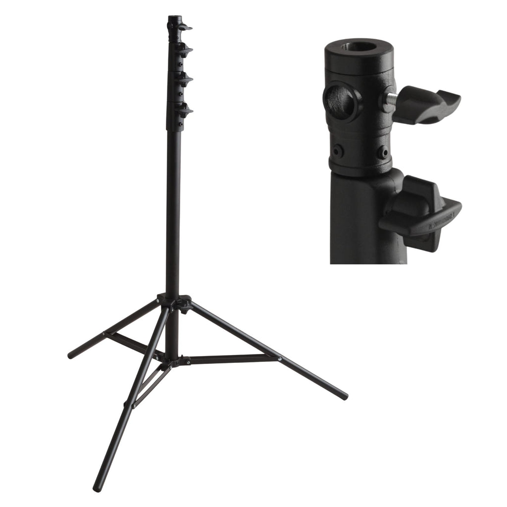 93~324cmの4段伸縮式ライトスタンドで、エアクッション機構により滑らかで安定した高さ調整が可能です。1段目パイプ径36mm、開脚時直径100cmの堅牢な脚部構造が最大5kgの耐荷重を実現。大型ノブにより締めやすく、操作性に優れています。17mmメスダボを採用することで、国内外の主要ストロボメーカーの機材に対応。スタジオ撮影から出張撮影まで、プロフェッショナルな撮影環境を構築できるスタンドです。