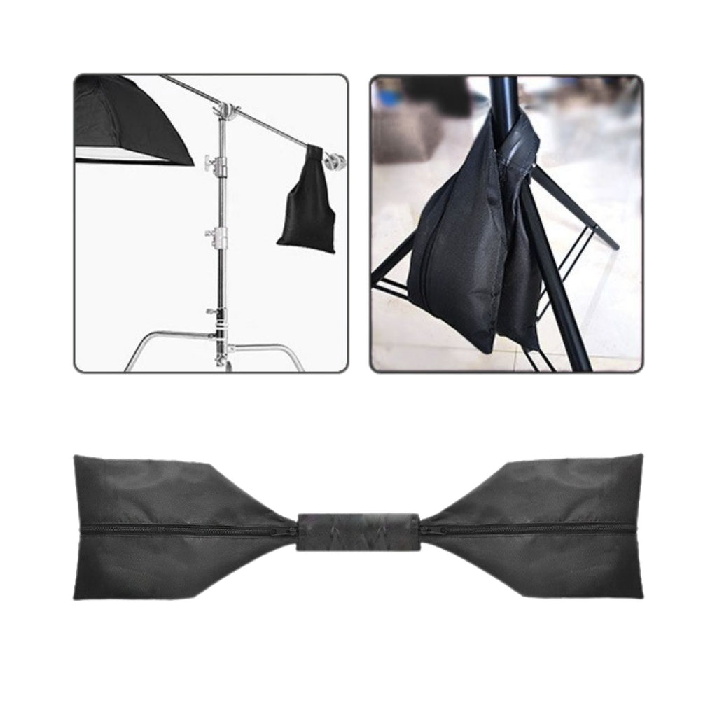 三脚、ライトスタンド、ブームの安定に最適なウエイト サンドバッグです。防水性と剛性に優れたオックスフォード生地を採用し、耐久性に優れています。 ユニークな形状で、スタンドに巻きつける部分(長さ15cm)と重りを充填するポケット部分(W30×D20cm)を備えています。展開時のサイズはW76×D20cm、本体重量は140gで、最大5kg(2.5kg×2)までの重りに対応。砂等の重りを入れることができ、撮影環境に応じた柔軟な重量調整が可能です。